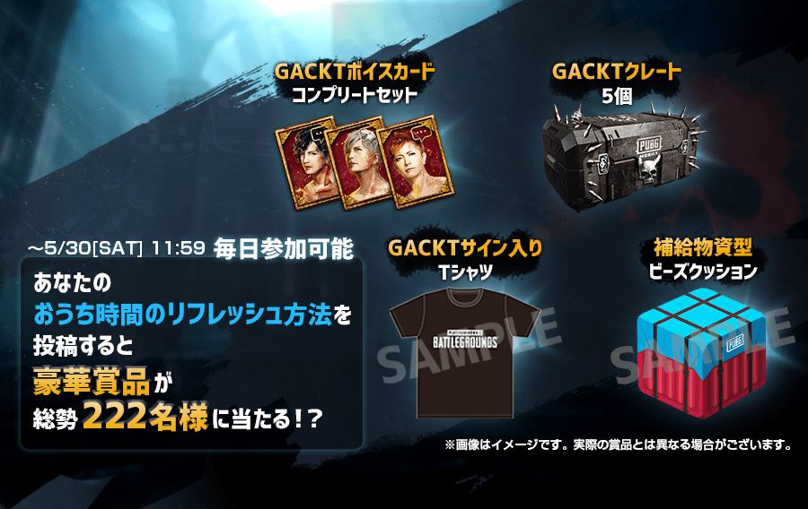 今までに実装されたGACKTボイスカード3種類がセットになったコンプリートセットやここでしか入手できない『PUBG MOBILE』補給物資型のビーズクッションなど豪華なラインナップとなっております。