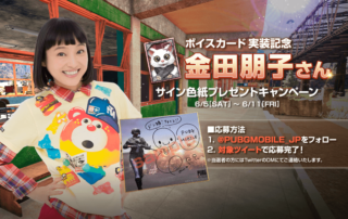 ボイスカード「白猫(cv.金田朋子)」実装を記念して「直筆サイン色紙」が当たるキャンペーンを実施します。 キャンペーン期間中に公式Twitter(@PUBGMOBILE_JP)をフォロー&対象のツイートをRTしてくださった方の中から抽選で2名様に金田朋子さんの直筆サイン色紙をプレゼント! ※ボイスカード「白猫(cv.金田朋子)」のサンプルボイスを『PUBG [もっと見る]