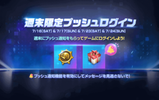 イベント開始時にプッシュ通知が届く「プッシュログインイベント」が週末に開催決定! 事前にプッシュ通知を設定してイベントに備えておこう! ■開催期間 [もっと見る]