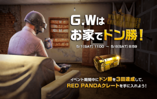 CLASSICモードでドン勝を3回達成することで「RED PANDAクレート」が手に入るドン勝達成イベントを開催中! ゴールデンウィークもドン勝を目指して頑張ろう! [もっと見る]