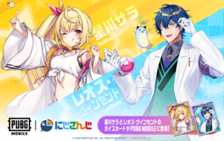『PUBG MOBILE』と『星川サラ』&『レオス・ヴィンセント』のコラボが12/13(金)より開催中! ゲーム内では、『星川サラ』と『レオス・ヴィンセント』のボイスカードが登場しています! [もっと見る]