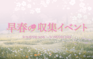 早春の収集イベント 春の兆しを感じ始める季節に早春の収集イベントを開催! イベントアイテム「新芽」を集めて、「Sweet Rabbitセット」や「もちもちウサギフレーム」を手に入れよう! [もっと見る] Takayuki Nosaka2023-02-21T14:26:46+09:0023.02.24|お知らせ|