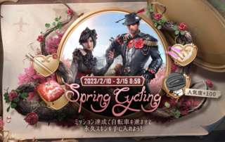 【追記】SPRING CYCLINGイベント 3月9日(木)20:40追記:本イベントのサイコロの出目確率が企画案と異なっていることを確認しております。該当問題は、3月9日(木)19:30頃に修正対応を行っております。 本イベント終了後、イベントに参加されたプレイヤーの皆さまにはお詫びを配布する予定です。詳細はこちらからご確認ください。 イベントアイテム「ハート」と「サイコロ」を集めてサイクリングを楽しもう! [もっと見る] Takayuki Nosaka2023-03-09T20:40:28+09:0023.02.10|お知らせ|