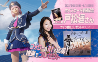 ボイスカード「戸松遥A」が『PUBG MOBILE』に新登場!これを記念して直筆サイン色紙が当たるキャンペーンを実施します。 キャンペーン期間中に公式Twitter(@PUBGMOBILE_JP)をフォロー&対象のツイートをRTしてくださった方の中から抽選で4名様に戸松遥さんの直筆サイン色紙をプレゼント! [もっと見る]