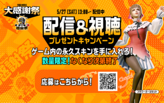 「PUBG MOBILE大感謝祭」視聴者限定プレゼントキャンペーンを実施! 配信を視聴して、ゲーム内衣装スキン「フラワーガールセット」を手に入れよう。 [もっと見る]