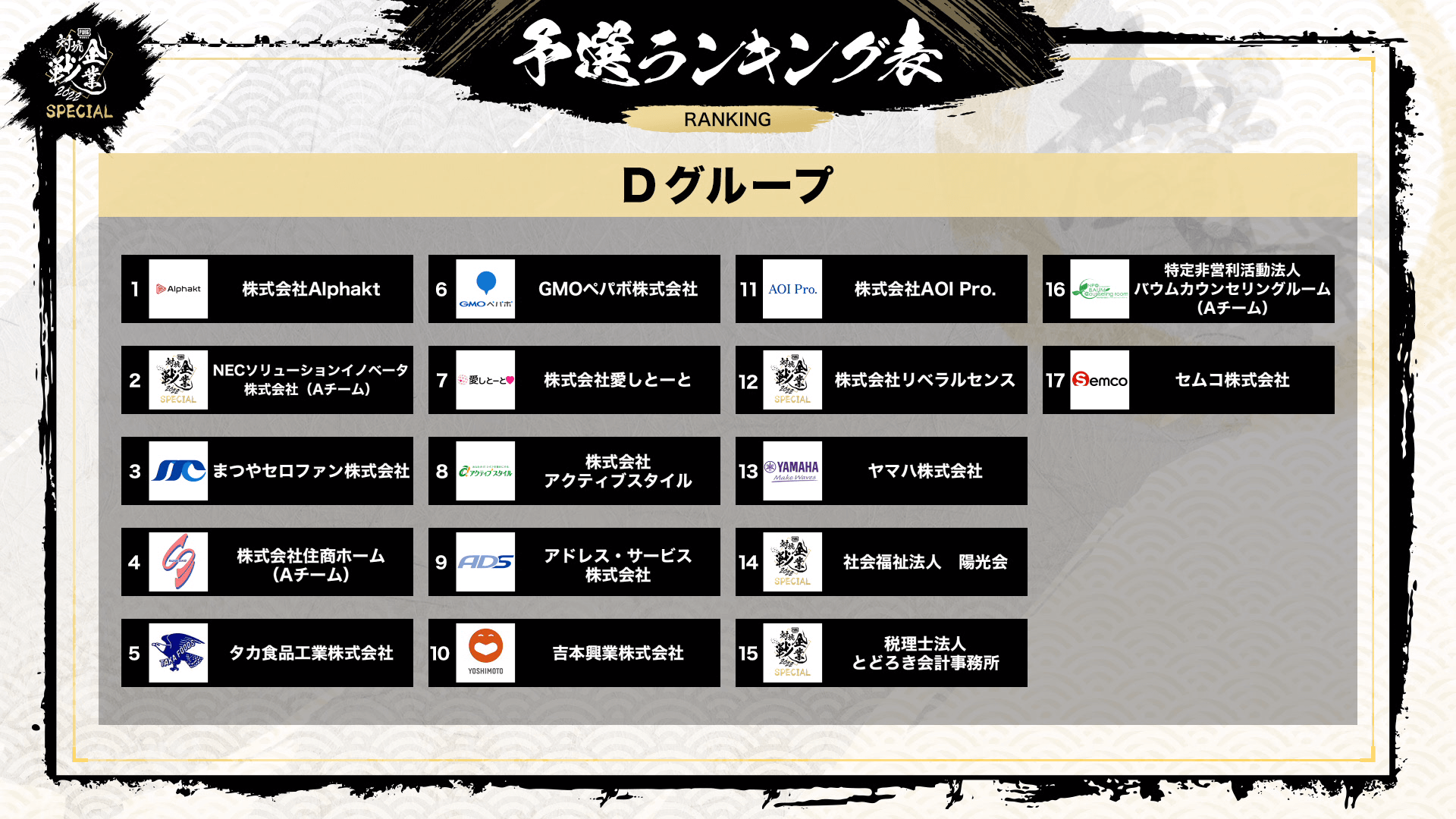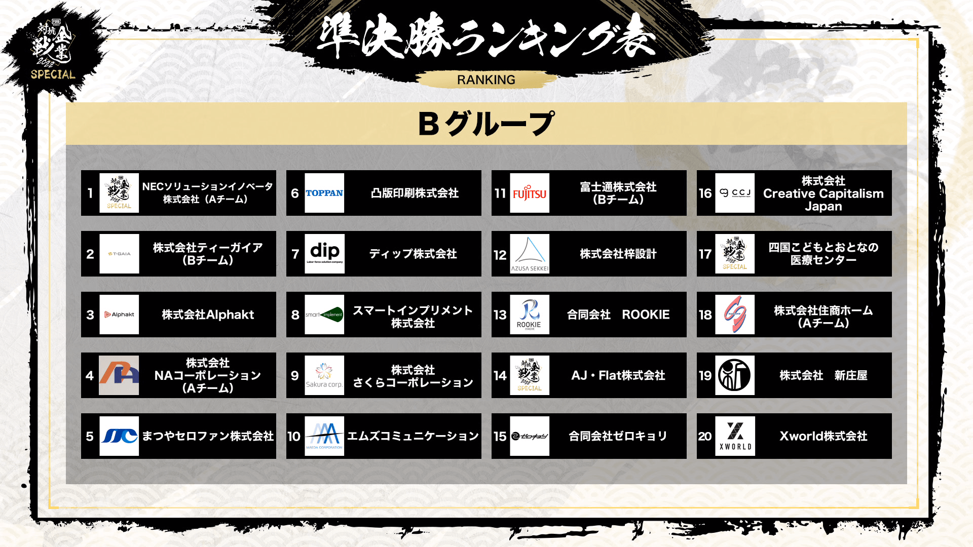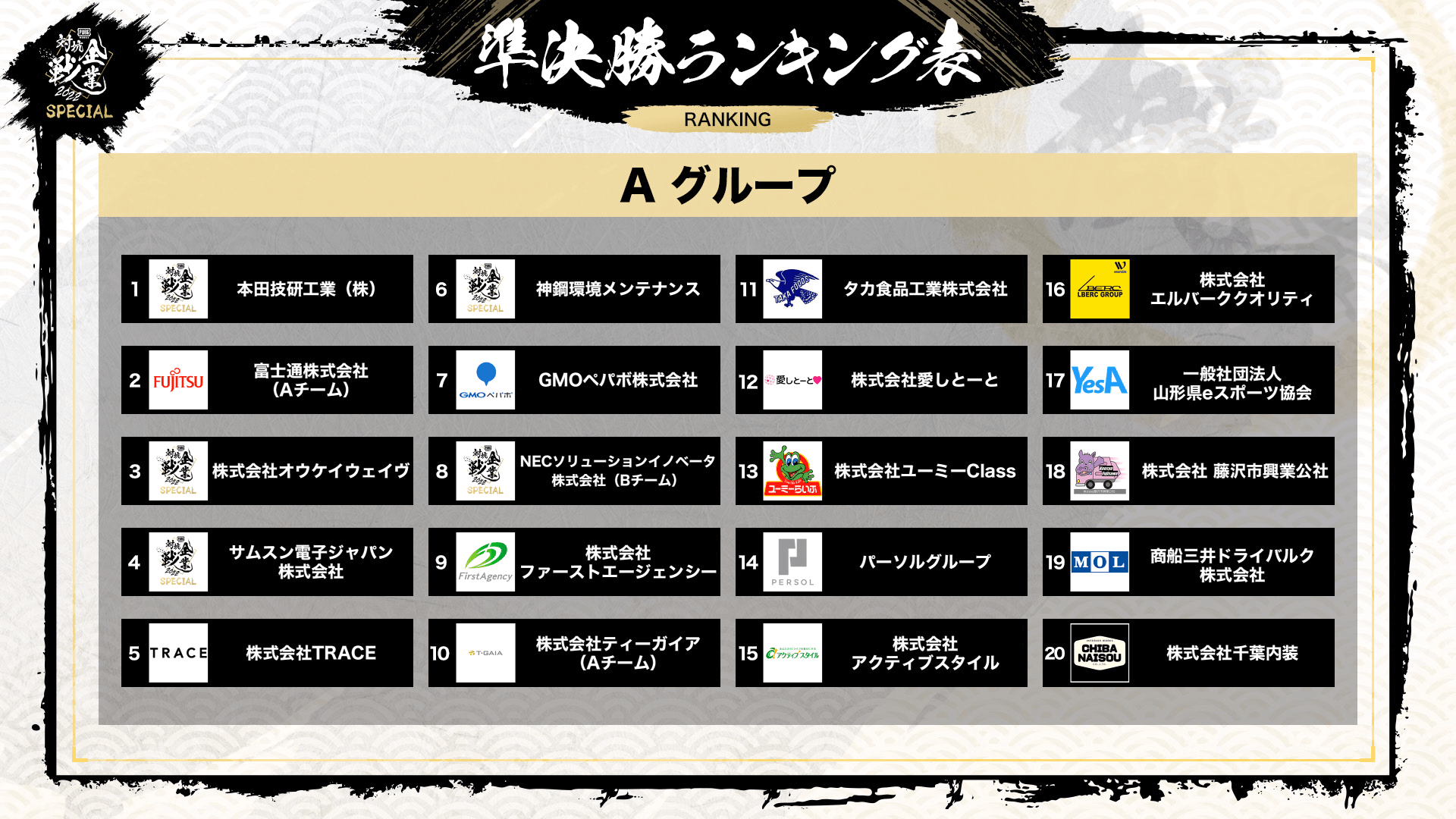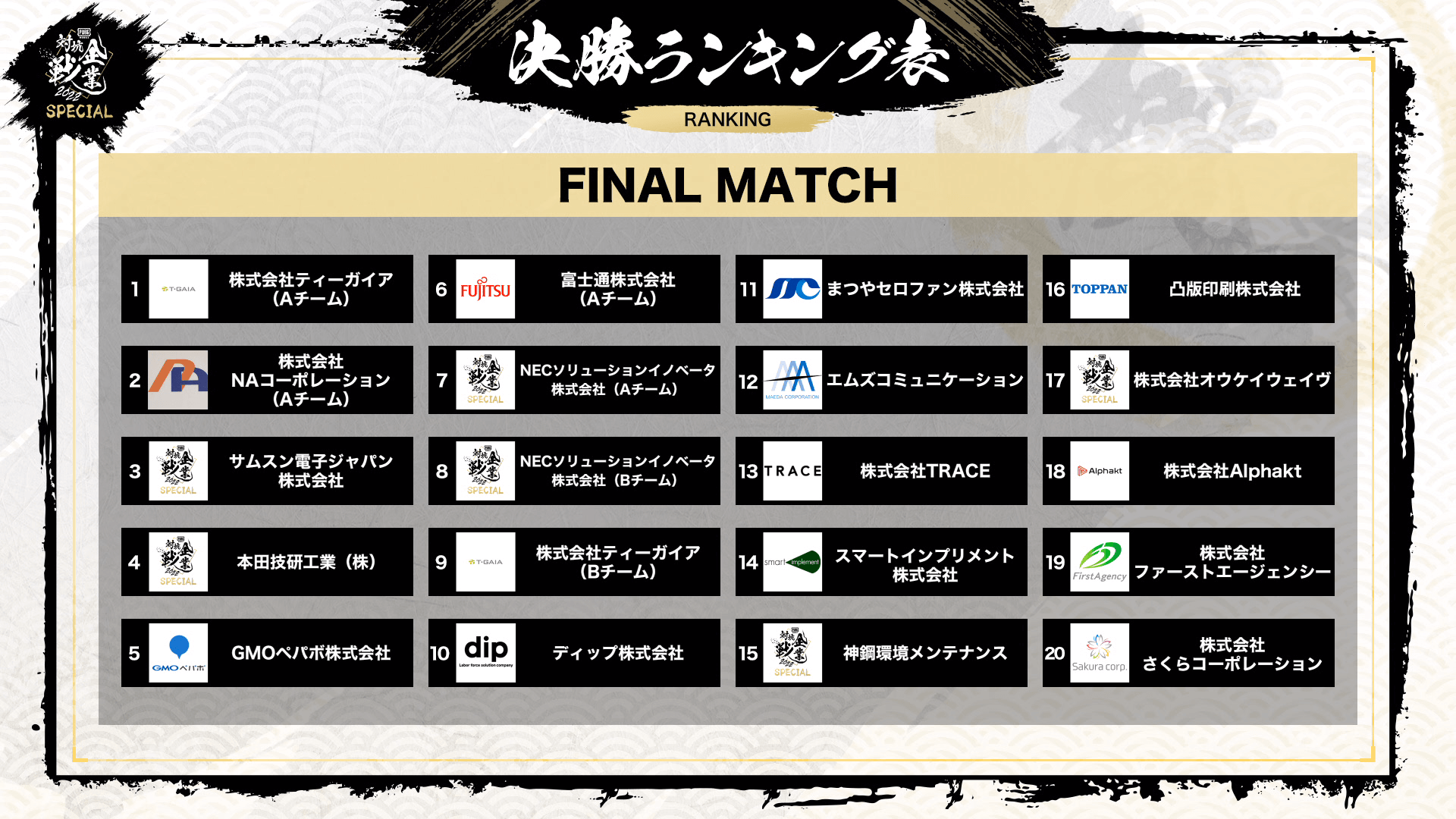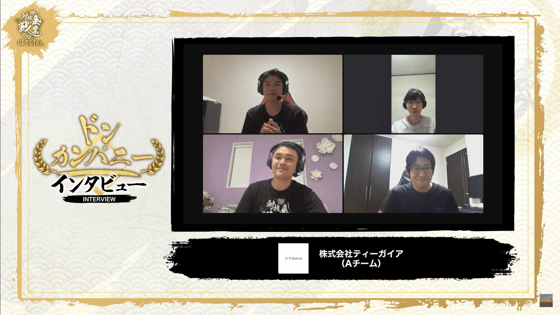 「株式会社ティーガイア」は前回に引き続き2連覇を達成。決勝戦では最終局面で4人生存のまま見事に敵を殲滅し、
